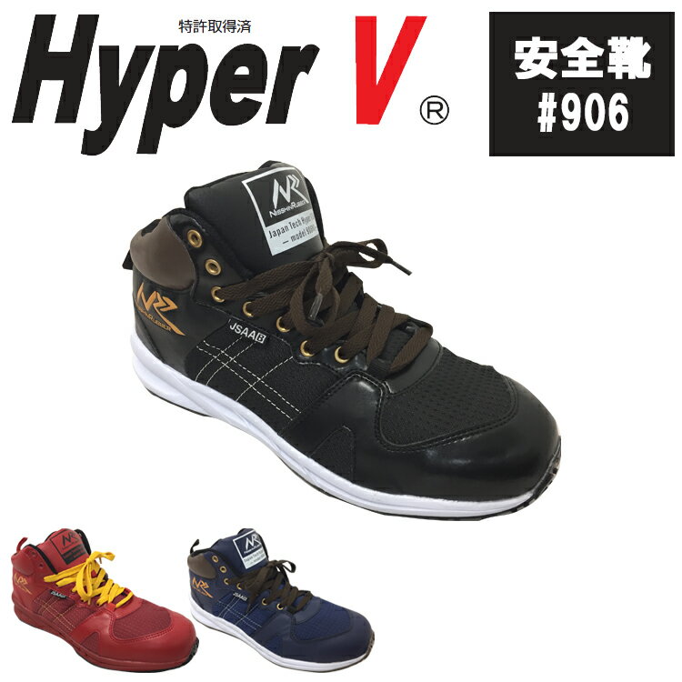 【レビュー特典あり】 [ ハイパーV #906MG ( ネイビー | ブラック | レッド ) ] JSAA B種 樹脂先芯 紐靴 軽量 スニーカー 日進ゴム 黒色 青色 赤色 安全靴 安全スニーカー シューズ スニーカー 靴 紐靴 #960MG ハイパーV960 HYPERV ハイパーv