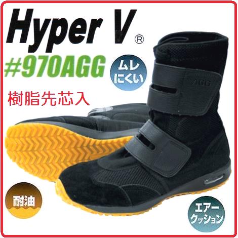 【レビュー特典あり】[ ハイパーV #970AGG ブラック ] 樹脂先芯 耐油 エアークッション 軽量 蒸れにくい ハイカット 安全スニーカー 安全靴 HyperV 日進ゴム 黒 安全靴 安全スニーカー シューズ 靴 マジックテープ#970 ハイパーV970 HYPERV ハイパーv