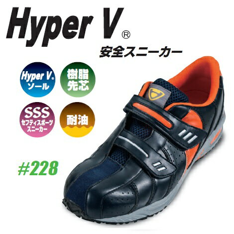 【レビュー特典あり】[ ハイパーV #228 ネイビー ] 樹脂先芯 耐油 SSSセフティスポーツスニーカー 紐なし 紐無し 紐無し靴 HyperV 日進ゴム 安全靴 安全スニーカー 紺 マジックテープ式 シューズ スニーカー 靴 #228 ハイパーV228 HYPERV ハイパーv