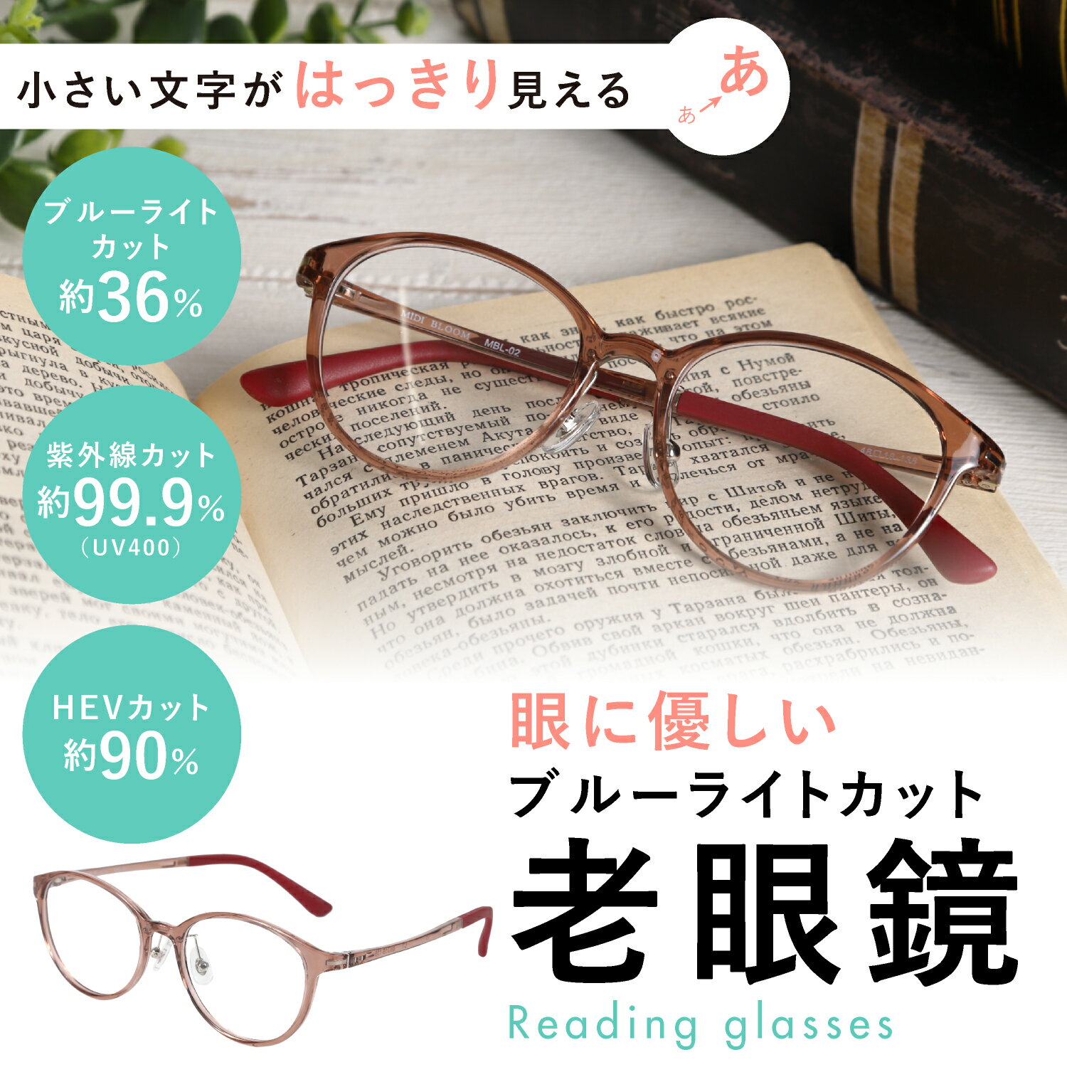 度数+0.25から 老眼鏡 ブルーライトカット レディース おしゃれ 0.5 軽い かわいい ミディ ボストン 30代 40代 0.75 1.0 1.25 1.5 1.75 2.0 2.25 2.5 2.75 3.0 3.25 3.5 3.75 4.0 MIDI BLOOM MBL-02-RG