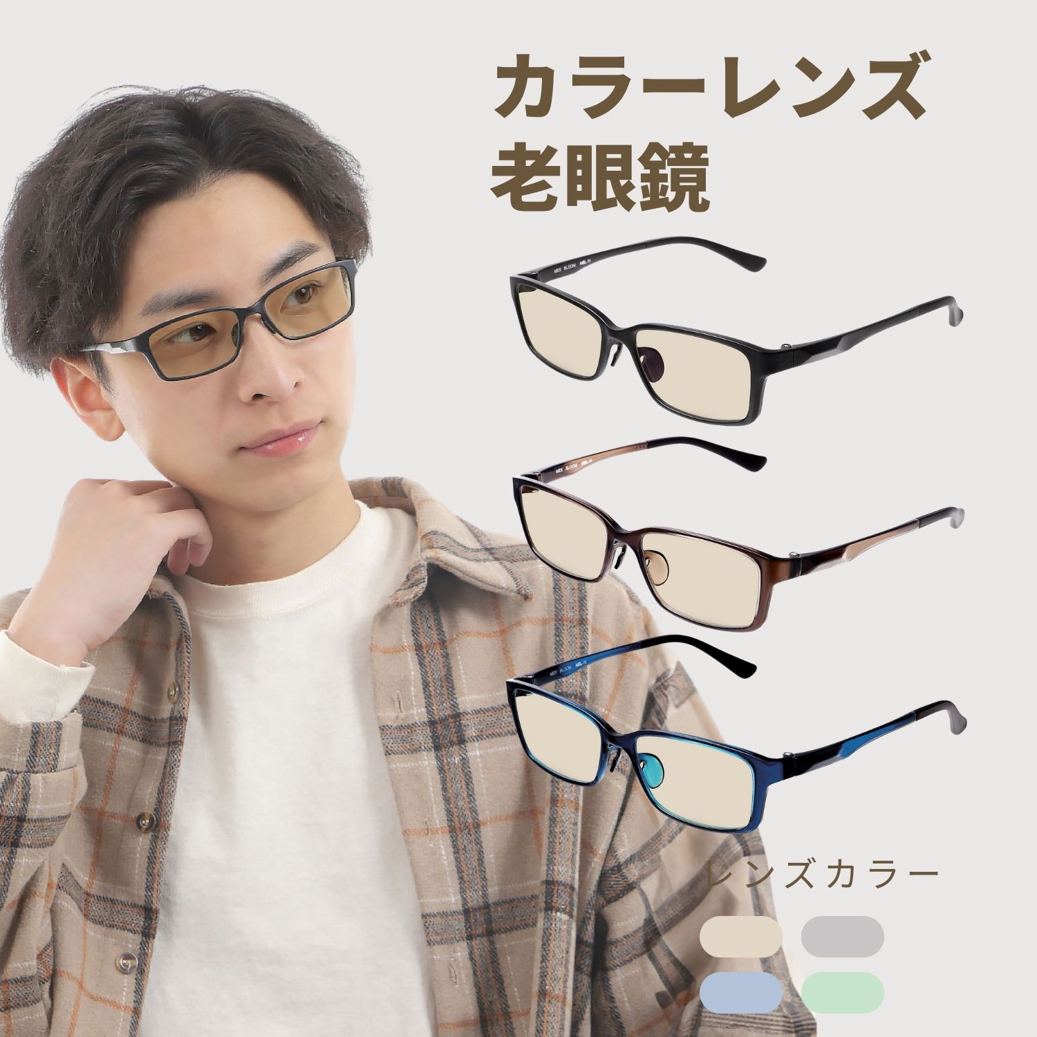 MIDI BLOOM 老眼鏡 色付きレンズ スクエア 紫外線カット uvカット 男性 メンズ グレー ブルー 青 グリーン ブラウン 色付き老眼鏡 サングラス 薄い 色入り老眼鏡 カラーレンズ 3フレームカラー×4レンズカラー MBL-11-RG-COLOR