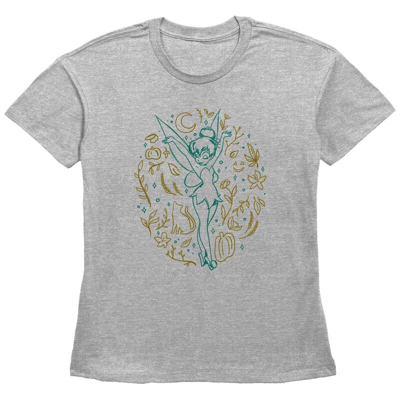 【送料無料】 ディズニー レディース Tシャツ トップス Disney's Tinker Bell Fall Icons Women's Graphic Tee Heather Gray