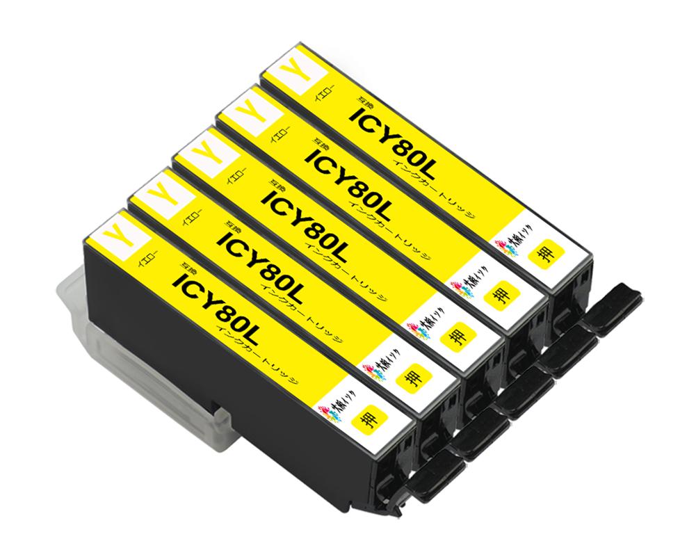 エプソン インクカートリッジ 80L 互換 IC6CL80L Y ICY80L イエロー 5本セット とうもろこし 対応機種:EP-807AW / EP-808AW / EP-707A / EP-708A / EP-777A / EP-807AB/AR/EP-808AB/AR/EP-907F / EP-977A3 / EP-978A3 / EP-979A3 IC6CL80L増量版 ICチップ付 残量表示