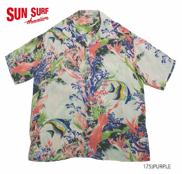 身 幅 肩 幅 着 丈 袖 丈 XS 0cm 0cm 0cm 0cm S 50.0cm 44.0cm 65.0cm 21.0cm M 54.0cm 48.0cm 69.0cm 24.0cm L 56.0cm 52.0cm 70.0cm 23.0cm XL 60.0cm 54.0cm 72.5cm 24.0cm XXL 63.0cm 56.0cm 72.0cm 25.0cm ※当店で扱う商品の中には非常にデリケートなパーツを使用しているものがありますので、取扱いにはご注意下さい。※商品の写真はお使いのディスプレイによって実物と若干色が異なって見える場合があります。※商品は実店舗でも並売しているため、売り切れの際は御容赦下さい。※サイズ表記について商品の性質上、同商品でも誤差がございます。サイズ一覧はあくまで目安としてお考え下さい。INFORMATION マリヒニ社を立ち上げたレイモンド・ササキの友人、クリフォード・ウォンがシャツメーカー「ハワイアン・トッグス」を買取り、アロハシャツのマーケットに参入したのは1947年のこと。この柄のように、トロピカルデザインでありながら縮緬素材を使った作品など当時急速に増えていった市場の要求に対して様々なアプローチを仕掛けたブランドの1つである。 ITEM SPEC 素材 レーヨン・壁縮緬 カラー 165)RED,145)GREEN,175)PURPLE LABEL SUN SURF