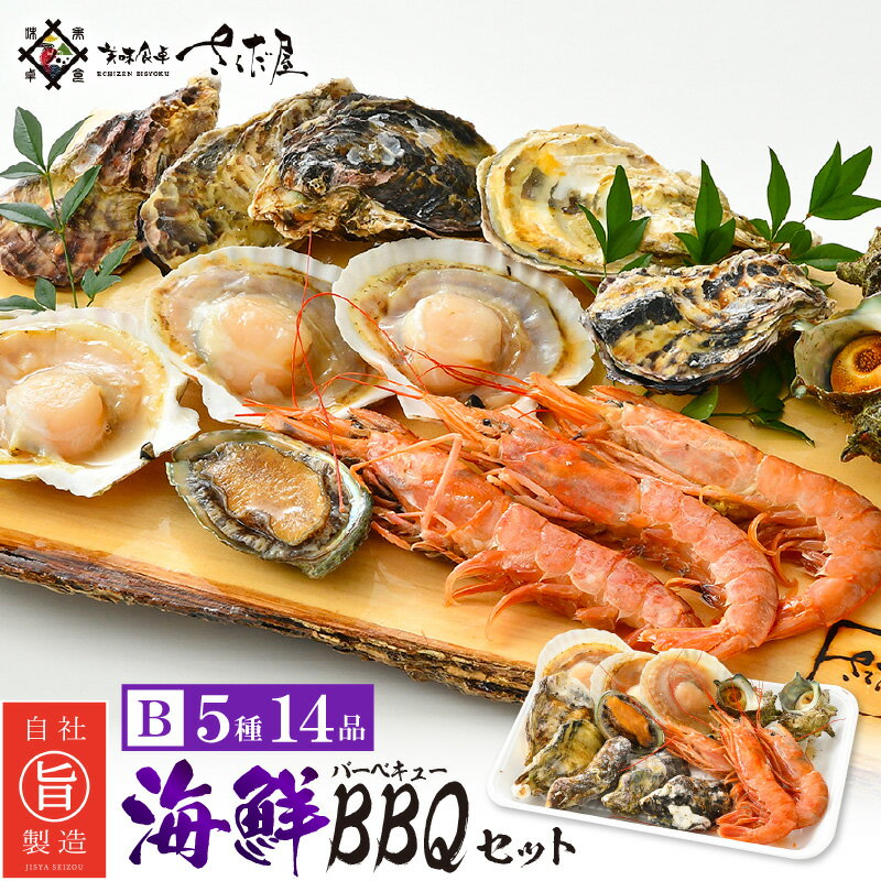 【ふるさと納税】厳選!海鮮 バーベキュー ≪B≫セット(5種14品、3〜4人用) エビ サザエ ホタテ 牡蠣 アワビ BBQ アウトドア 網焼き 冷凍便 [e04-a005]