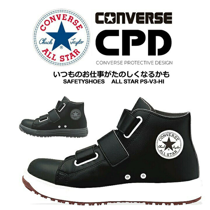 【期間限定10%オフクーポン対象商品】【即日発送】コンバース 安全靴 おしゃれ ハイカット スニーカータイプ オールスター PS-V3-HI 樹脂先芯 軽量 反射 耐滑 衝撃吸収 抗菌 防臭 JSAA規格 A種 セーフティーシューズ 作業靴 かっこいい ハイカット マジックテープ