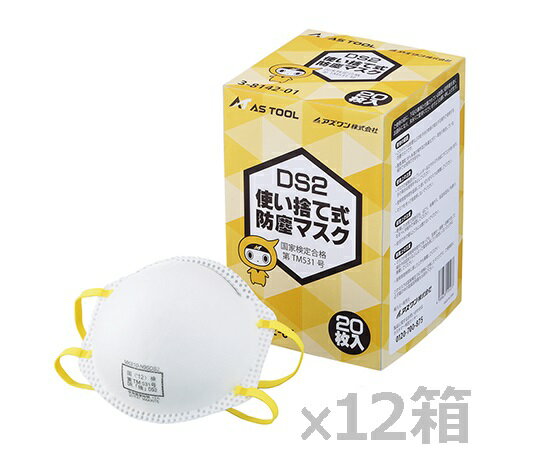☆アズワン 使い捨て式防じんマスク 区分DS2 排気弁無し 大箱1ケース(20枚/箱×12箱入) 〔3-8142-51〕