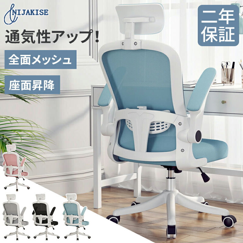 NIJAKISE オフィスチェア リクライニング メッシュ 滑り止め 尻 耐荷重95KG おしゃれ キャスター付き 二年保証 ハイバック パソコンチェア ワークチェア デスクチェア 回転 通気性 腰サポートバー 疲れにくい 事務椅子