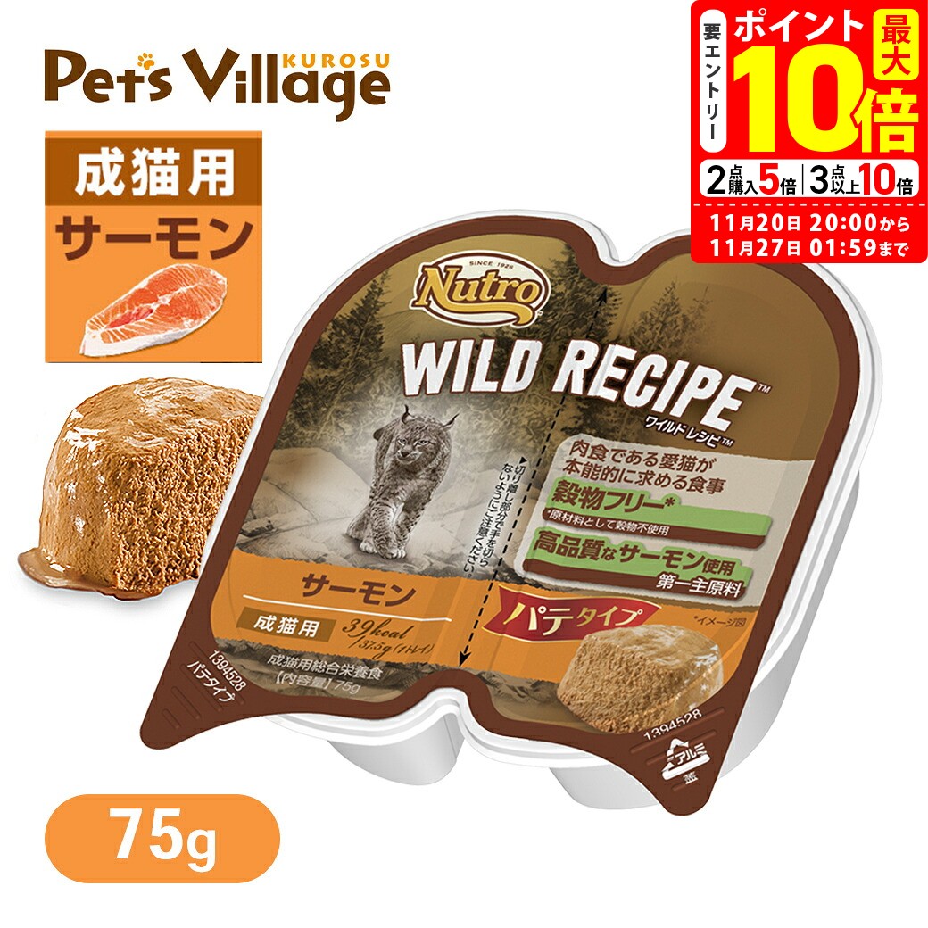 ポイント最大10倍!11/20 20:00〜11/27 01:59まで|公認店 ニュートロ ワイルドレシピ キャットフード 成猫用 サーモン パテタイプ 75g ごはん ご飯 【ワイルドレシピ(WILD RECIPE)】[キャットフード] ペッツビレッジクロス