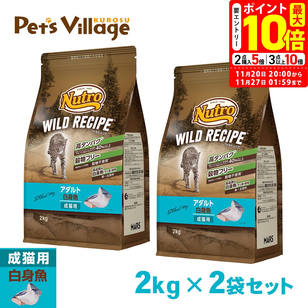 ポイント最大10倍!11/20 20:00〜11/27 01:59まで|公認店 ニュートロ ワイルドレシピ キャットフード アダルト 成猫・1歳〜6歳 白身魚 2kg×2袋 ごはん ご飯 【ワイルドレシピ(WILD RECIPE)】[キャットフード] ペッツビレッジクロス
