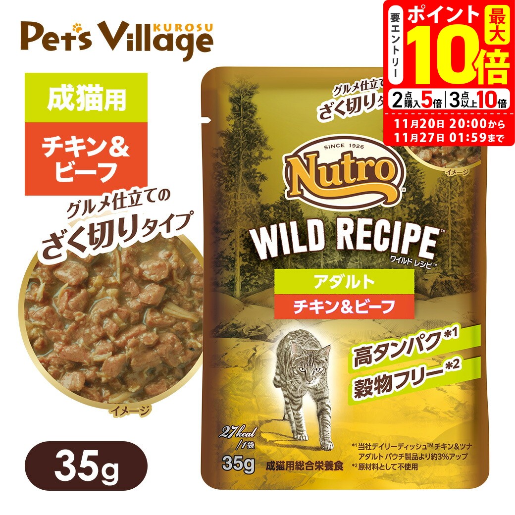 ポイント最大10倍!11/20 20:00〜11/27 01:59まで|公認店 ニュートロ キャット ワイルドレシピ アダルト チキン&ビーフ グルメ仕立てのざく切りタイプ パウチ ごはん ご飯 【ワイルドレシピ(WILD RECIPE)】[キャットフード] ペッツビレッジクロス