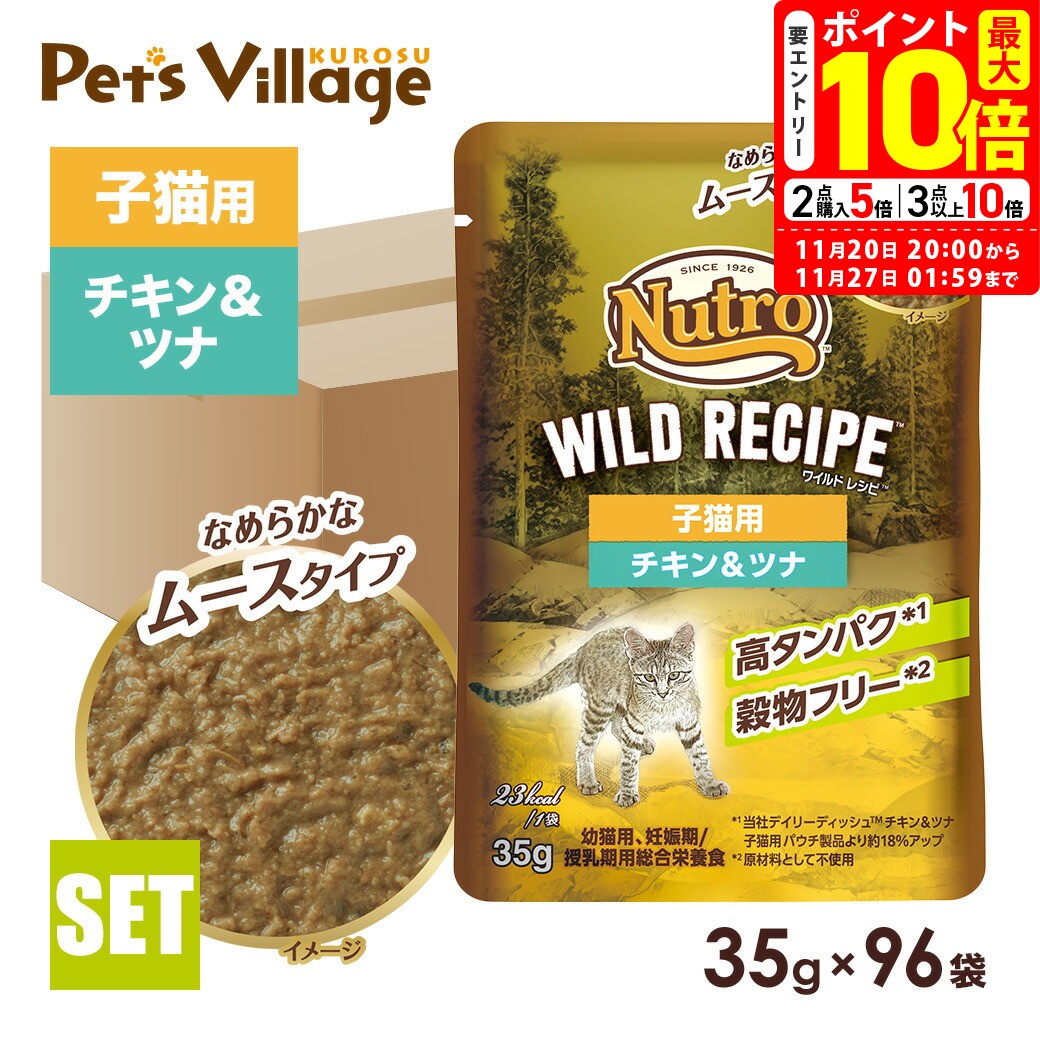 ポイント最大10倍!11/20 20:00〜11/27 01:59まで|公認店 ニュートロ キャット ワイルドレシピ 子猫用 チキン&ツナ なめらかなムースタイプ パウチ 35g×96袋 ごはん ご飯 【ワイルドレシピ(WILD RECIPE)】[キャットフード] ペッツビレッジクロス
