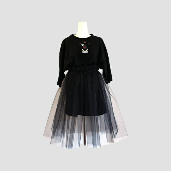 【パリ発イムカティムカ IMUKA TIMUKAT×セレクトショップDIVACLOSET コラボ】チュール Tシャツ ワンピース パールと王冠付きクマ刺繍 3D刺繍 ふわもこ ゆるふわ 大人 レディース 20代 30代 40代 プレゼント 誕生日 海外 【DIVAオリジナル】【コラボ限定商品】