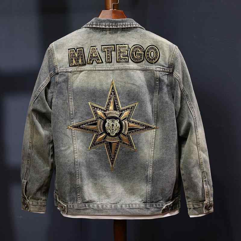 デニムジャケット 男性用 刺繍 アウター 耐摩耗 春秋 薄手 長袖 星柄 バイク レトロ ビンテージ ブルゾン Gジャン M L XL 2XL 3XL 4XL カジュアル ブルー