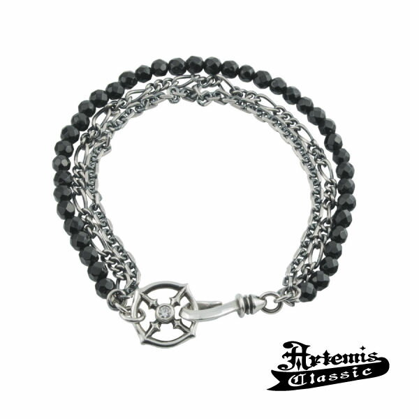 【「貴族誕生 -PRINCE OF LEGEND-」衣装協力商品】アルテミスクラシック ArtemisClassic ブラックスピネル ブランド ブレスレット メンズ シルバー チェーン フック 天然石 ストーン 大人 かっこいい 高級感 男性 彼氏 誕生日 プレゼント ギフト 記念日 贈り物 クリスマス
