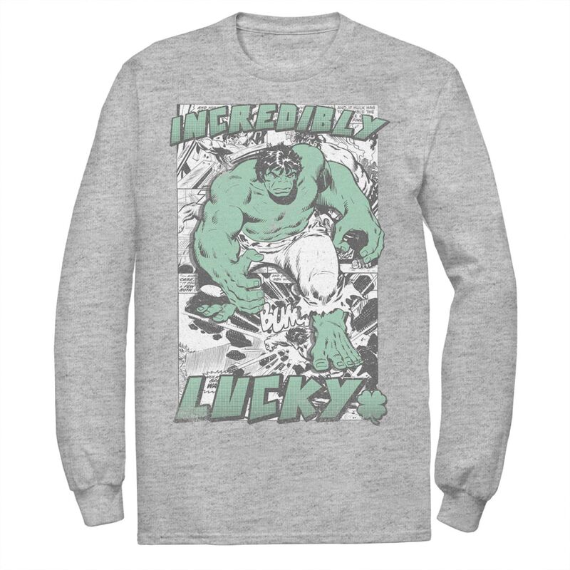 【送料無料】 ライセンス キャラクター メンズ Tシャツ トップス Men's Marvel Hulk Incredibly Lucky St. Patrick's Sweatshirt Athletic Heather