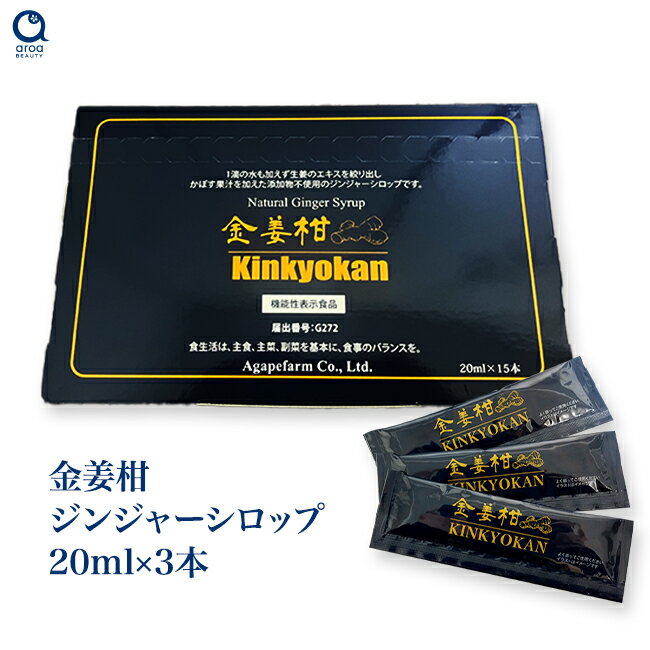 国産 ジンジャーシロップ きんきょうかん(金姜柑) 機能性表示食品 オーガニック ジンジャーシロップ しょうがシロップ 生姜シロップ 無添加 アガペ薬局 アガペファーム 20ml×3本入り