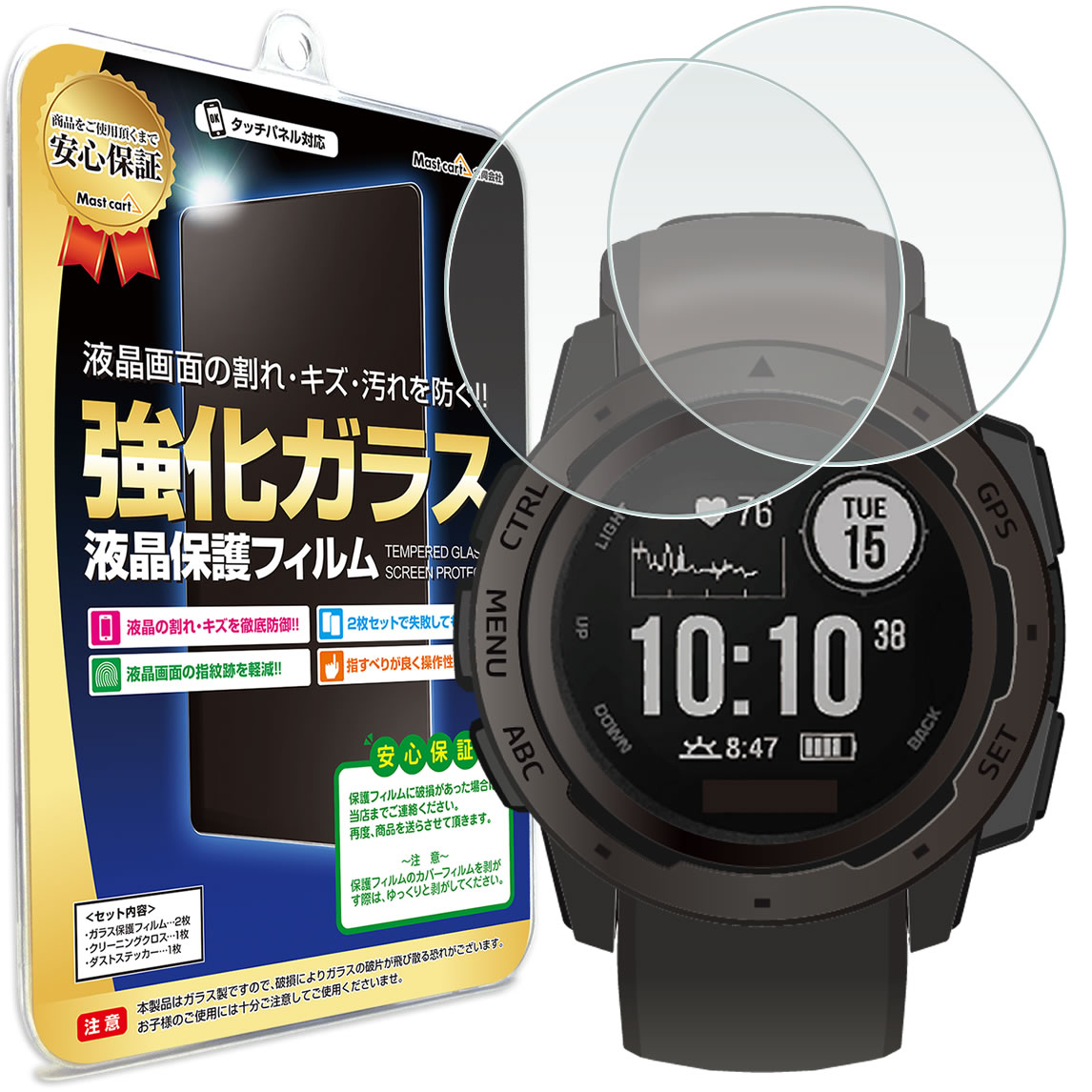 ●強化ガラス保護フィルム 2枚セット Garmin Instinct 対応 Garmin Instinct Tactical 対応 Garmin Instinct TIDE 対応 液晶画面の汚れやキズを防止!本体を傷つけない!! 鮮やかな極薄光沢仕様。 【90%の高透過率】 液晶画面が映し出す本来の色合いを鮮やかに表現します。 【指すべりが良く操作性が快適】 液晶のタッチ操作も滑らかにタッチ操作可能です。 【液晶画面の指紋跡を軽減】 液晶をタッチする際の指紋は汚れとなって液晶に付着します。 指紋跡の付着を軽減し、鮮やかな画面を維持します。 【キズに強いガラスフィルム】 液晶本体へのキズを防ぐための強化ガラスを使用。 【商品内容】 ・強化ガラス保護フィルム 2枚 ・マイクロファイバークロス 1枚●強化ガラス保護フィルム 2枚セット Garmin Instinct 対応 Garmin Instinct Tactical 対応 Garmin Instinct TIDE 対応 液晶画面の汚れやキズを防止!本体を傷つけない!! 鮮やかな極薄光沢仕様。 【90%の高透過率】 液晶画面が映し出す本来の色合いを鮮やかに表現します。 【指すべりが良く操作性が快適】 液晶のタッチ操作も滑らかにタッチ操作可能です。 【液晶画面の指紋跡を軽減】 液晶をタッチする際の指紋は汚れとなって液晶に付着します。 指紋跡の付着を軽減し、鮮やかな画面を維持します。 【キズに強いガラスフィルム】 液晶本体へのキズを防ぐための強化ガラスを使用。 【商品内容】 ・強化ガラス保護フィルム 2枚 ・マイクロファイバークロス 1枚