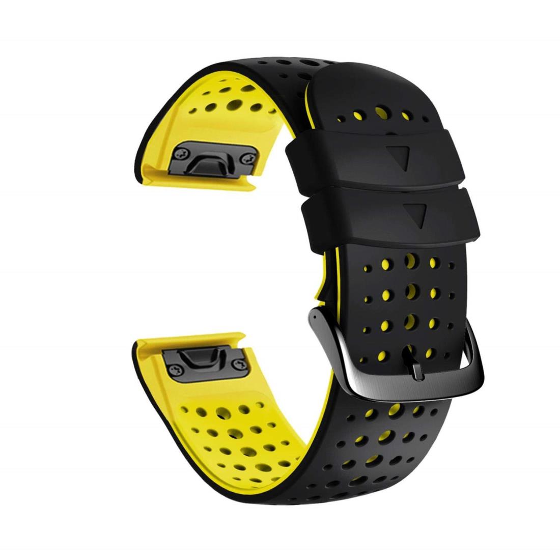 Ahayo QuickFit 22mm 替えバンド for GARMIN(ガーミン) Instinct 2 バンド 留め金具の多空気穴通気性 シリコン スポーツ バンド アップ対応GARMIN(ガーミン) Fenix 7/ EPIX 2 / Fenix 6/Fenix 5/Approach S62/Forerunner 955 965(黒と黄色)