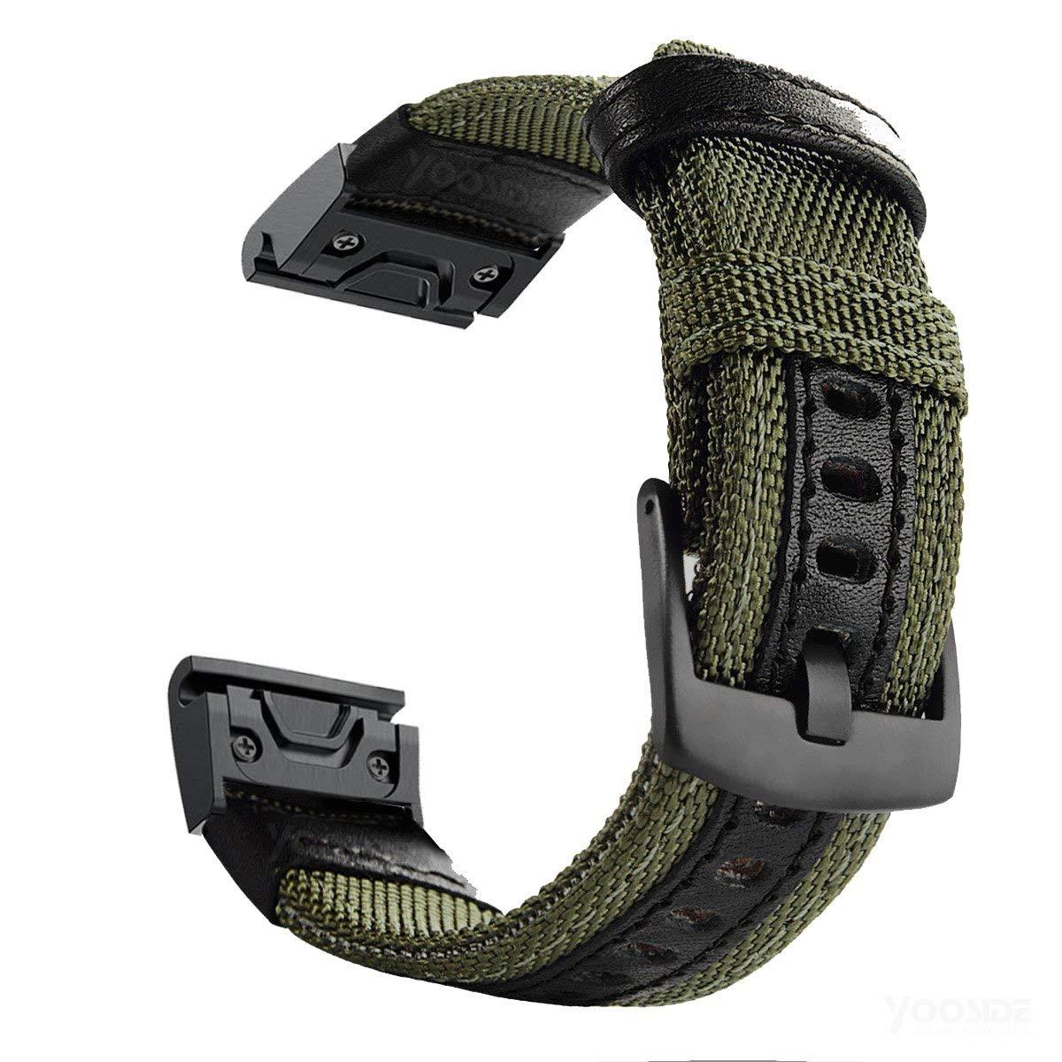 交換ベルトに適合するガーミン Garmin EPIX2 / Fenix 7 / Fenix 6 / Fenix 5 / Approach S62用 QuickFit 22mm ナイロンを編むキャンバス クイック リリース瞬時取り付け 対応 Forerunner 955/ Instinct 2/ MARQ (グリーン)