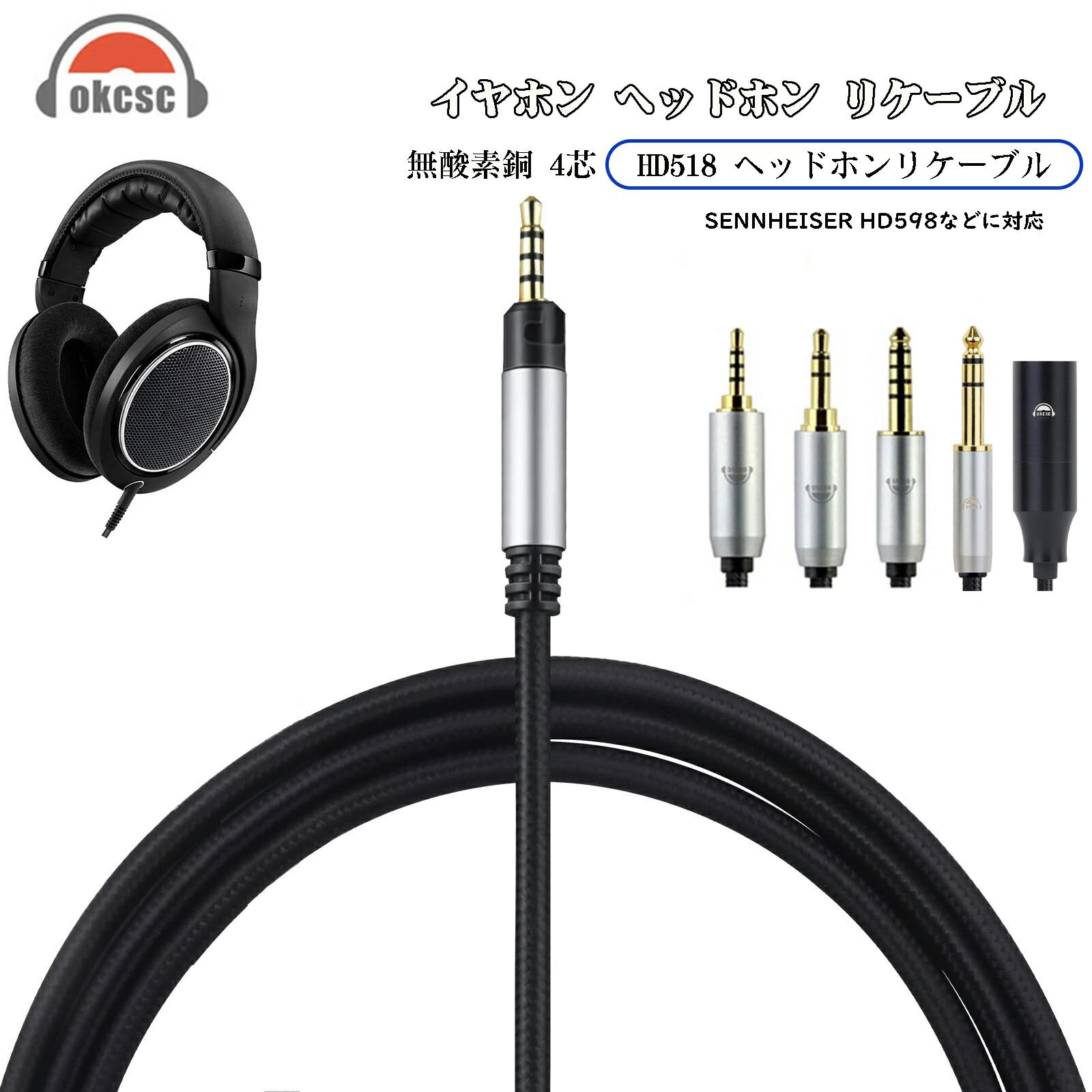okcsc TCHD518 ヘッドホンケーブル リケーブル イヤホン・ヘッドホン用 SENNHEISER用 HD598・HD558・HD518・HD598 Cs・HD599に適合 OFC 4芯 長さ2.0m 2.5mm 3.5mm 4.4mm 6.35mm 4PIN XRL