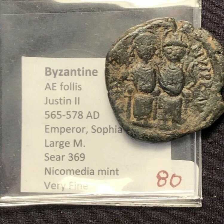 ? ビザンチン フォリス 皇帝ジャスティン 2 世 & ソフィア Rv ラージ M コンスタンティノープル ミント