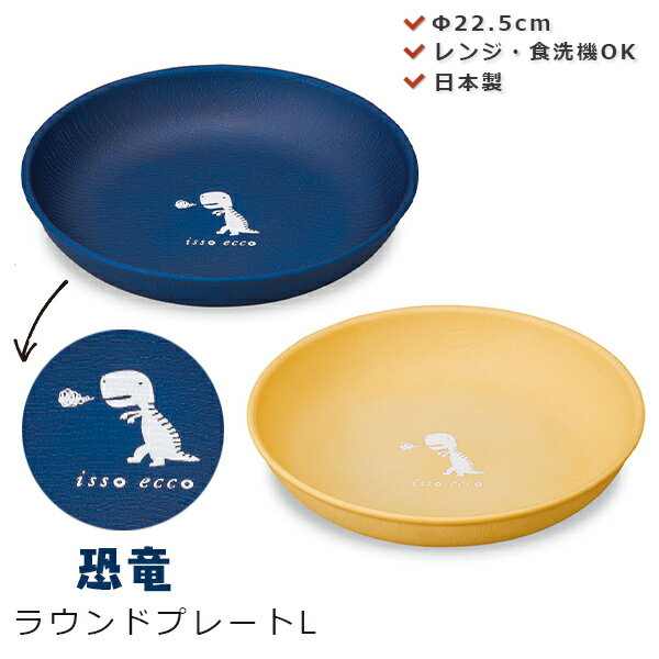 【isso ecco ラウンドプレート L きょうりゅう】恐竜 小学生 男の子 幼稚園 レンジ対応 食洗機対応 メラミンよりも便利 子供用取り皿 アウトドア バーベキュー キャンプ【正和】