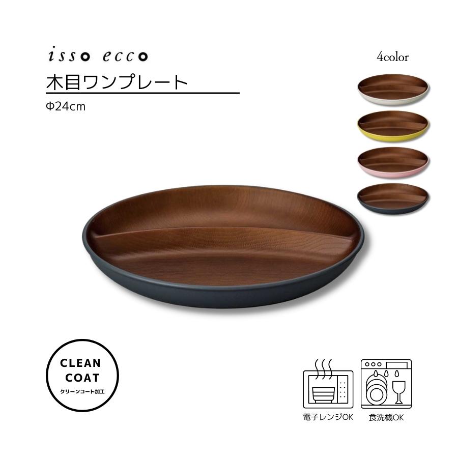 木目丸型ワンプレート 24cm isso ecco レンジ・食洗機対応樹脂製 木目調 洋食器 食器 ランチプレート プレート 仕切り皿 お皿 皿 食器 大皿 シンプル モダン