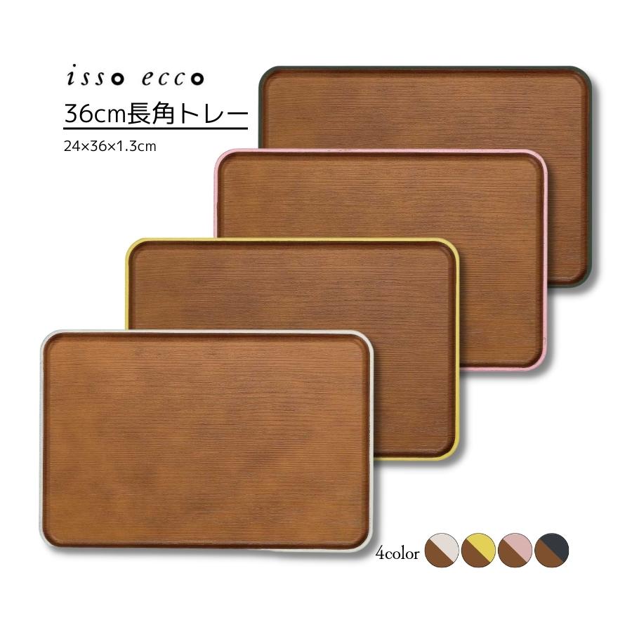 【isso ecco 36cm長角トレー】イッソエッコ 長方形トレー 軽い 落としても割れにくい 日本製 木製風 木目調 合成漆器 おしゃれなカフェ風食器 ウッド調木目食器 お盆 ABS樹脂【正和】