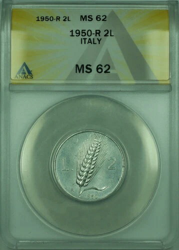 1950-R 2L イタリア ANACS MS 62 2リラ硬貨 KM#88