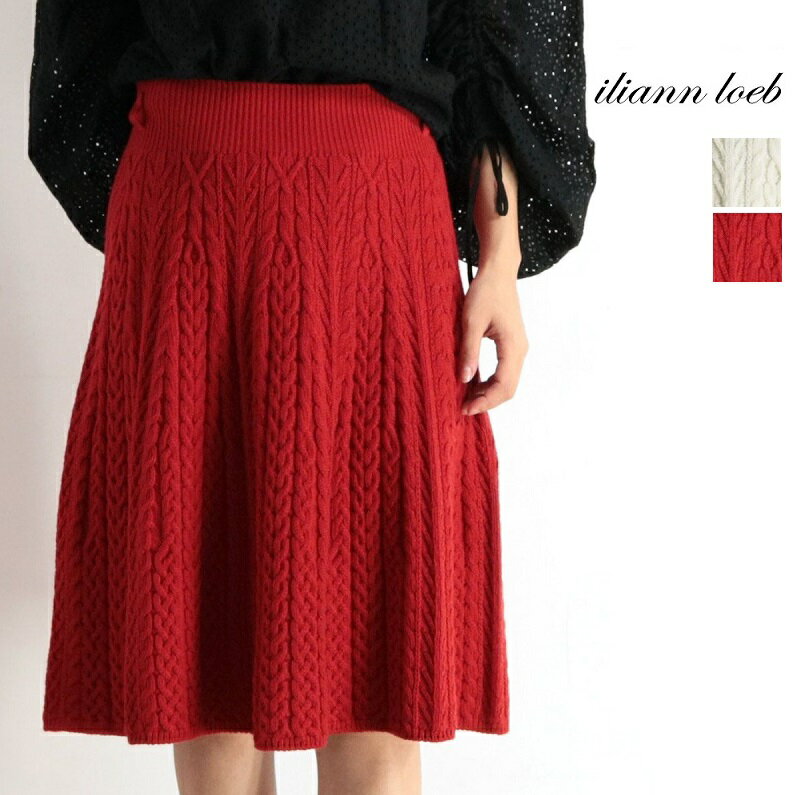 【40%OFF】iliann loeb イリアンローブ ケーブル編み フレアスカート ホールガーメント ニットスカート 44183002 ホワイト ブラウン レッド | 18aw 2018秋冬