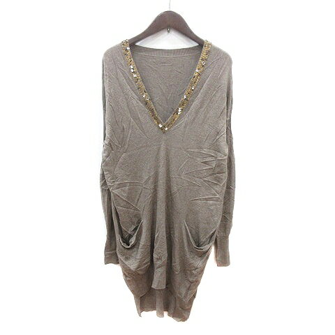 【中古】イリアンローブ iliann loeb ワンピース ミニ 長袖 スパンコール ビジュー カシミヤ混 グレージュ /MN レディース 【ベクトル 古着】 250801
