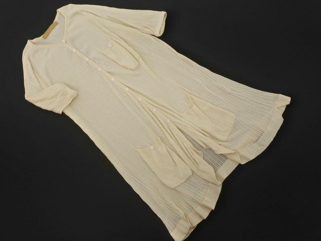 iliann loeb イリアンローヴ ロング カーディガン アイボリー ■◆ ☆ fia3 レディース Mサイズカテゴリへの出品ですが、サイズの表記が無い商品です。実寸値をご確認の上、ご入札ください。前面・右襟に小穴がございます。(各箇所のヨゴレやダメージに関しましては、写真をご参照ください)他に状態の気になる箇所はございません。全体的に見ると良い状態のお品です。 表記サイズ:サイズ表記なし 実寸サイズ: 肩幅47cm身幅(脇下)52cm後ろ着丈(襟元より)87.5cm全長-袖丈25cm アイボリー ★素材は画像にてご確認ください。(画像にない場合は基本的に不明となります) ネコポスについて: ネコポスOKとタイトルに記載されていない商品はネコポス対象外となっております。 →ネコポス・送料について ご注意: お品の状態に関しては個人差がありますので神経質な方はご遠慮ください。 写真の色はご覧のモニターにより実際の色や明るさ等と異なって見える場合があります。あらかじめご了承ください。 →ご注文に関してのご注意