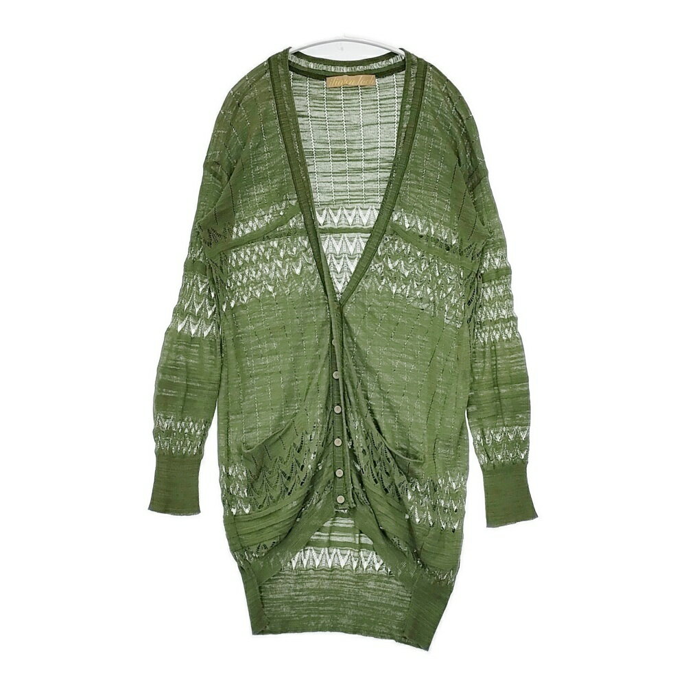 iliann loeb 透かし編み ロング丈 132114 コットン 日本製 カーディガン グリーン レディース イリアンローブ【中古】5-0822M