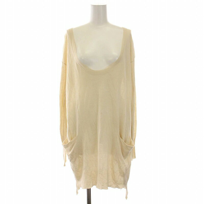 表記サイズ:なし 実寸サイズ:肩幅58cm, 身幅54cm, 袖丈10cm, 着丈56cm (多少の誤差はご了承ください) 素材:綿100% デザイン:iliann loebのコットンニットプルオーバーです。 カラーはオフホワイトで、透け感のある薄手ニット素材です。 襟ぐり&袖口&裾はリブ仕様です。 状態:ユーズドで使用感があり、袖口&裾のリブに少しヨレがございます。ご理解いただける方のご購入をお待ちしております。SNO.0958 NO.84-2505-43