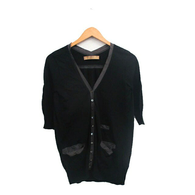 【中古】イリアンローブ iliann loeb カーディガン 七分袖 Vネック リネン シンプル ブラック 黒 /KT21 レディース 【ベクトル 古着】 250510