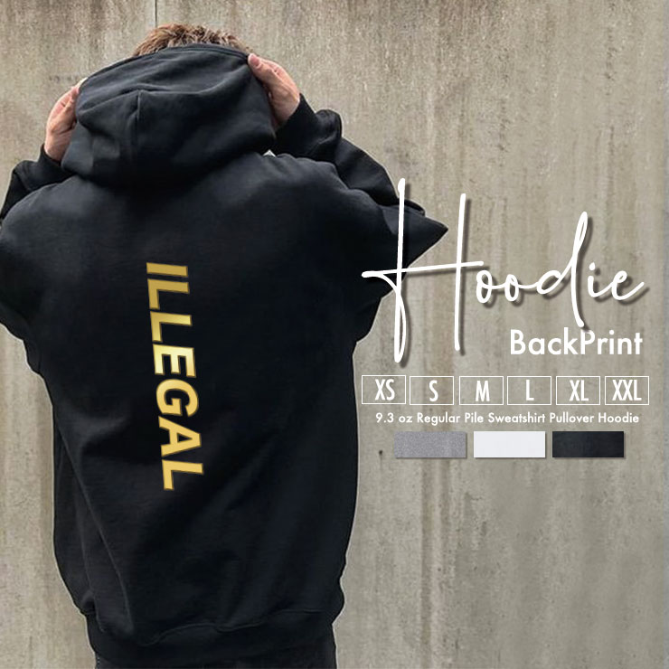 パーカー プルオーバー メンズ レディース バックプリント 秋冬 『illegal イリーガル 非合法』 スタンダード 10.0oz