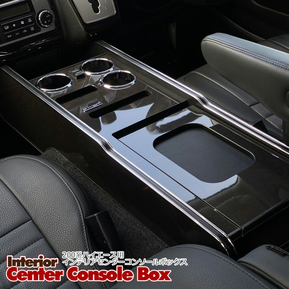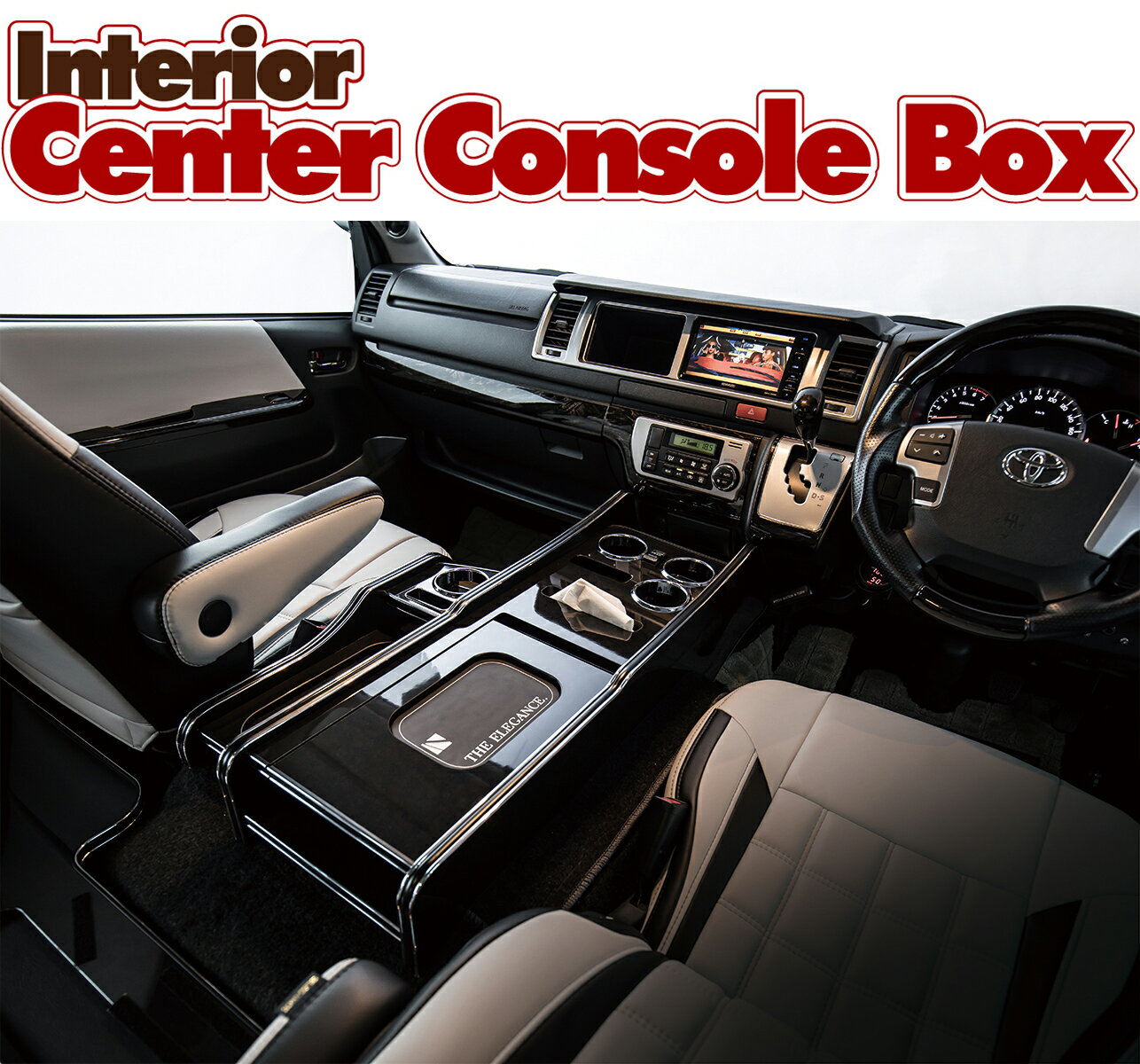 ハイエース 200系 インテリアセンターコンソールボックス 単品 LEGANCE レガンス 収納 足元 棚 スペース 便利 専用設計 ドリンクホルダー スマホ 充電 電話 アイコス 電子タバコ 内装 インテリア パーツ