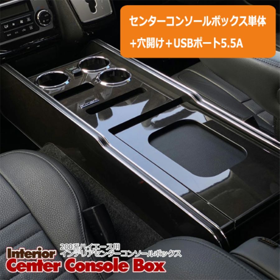 【USBポートオプションセット】 ハイエース 200系 インテリアセンターコンソールボックス LEGANCE レガンス 収納 足元 棚 スペース 便利 専用設計 ドリンクホルダー ティッシュホルダー スマホ 充電 電話 アイコス 電子タバコ 内装 インテリア パーツ
