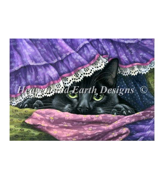 図案 Heaven And Earth Designs クロスステッチ刺繍 HAED 輸入 上級者 Irina Garmashova 布の下に隠れる猫 Mini Hidden Under The Fabrics 全面刺し