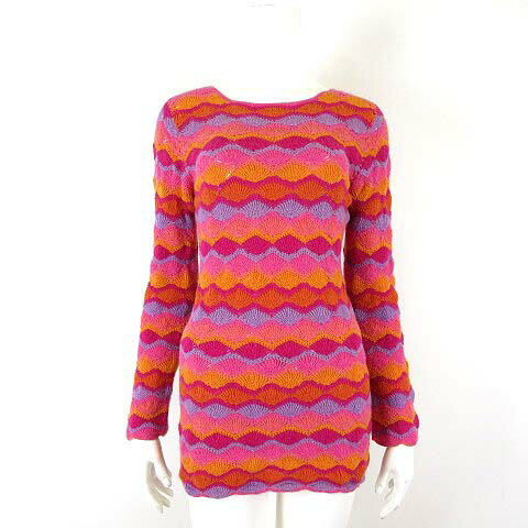 【中古】アイザックミズラヒ ISAAC MIZRAHI ニット セーター チュニック かぎ編み マルチボーダー 総柄 スカラップ ウール 長袖 S マルチカラー レディース 【ベクトル 古着】 260120