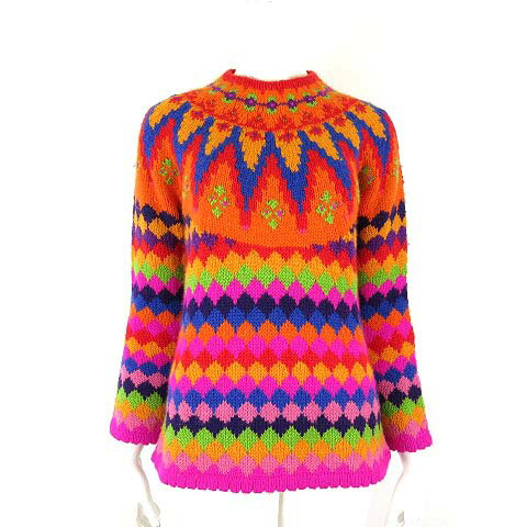 【中古】アイザックミズラヒ ISAAC MIZRAHI ニット セーター カラフル 求心編み 総柄 ウール スカラップヘム 長袖 S マルチカラー レディース 【ベクトル 古着】 260120