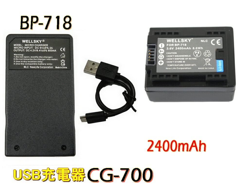 BP-718 BP-709 互換バッテリー 1個 + [ 超軽量 ] USB Type C 急速 互換充電器 CG-700 1個 [ 2点セット ] [ 純正品と同じよう使用可能 残量表示可能 ] Canon キヤノン iVIS アイビス HF M52 HF M51 HF R31 HF R30 HF R32 HF R42