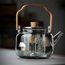 IwaiLoft 耐熱ガラス ティーポット ダブル茶こし付き 木製持ち手 銀杏の葉柄付き グレー ガラス製ポット ガラス急須 ジャンピング 紅茶ポット フルーツティー 花茶 工芸茶 蒸茶 煮茶 に ガラス急須 直火可 送料無料