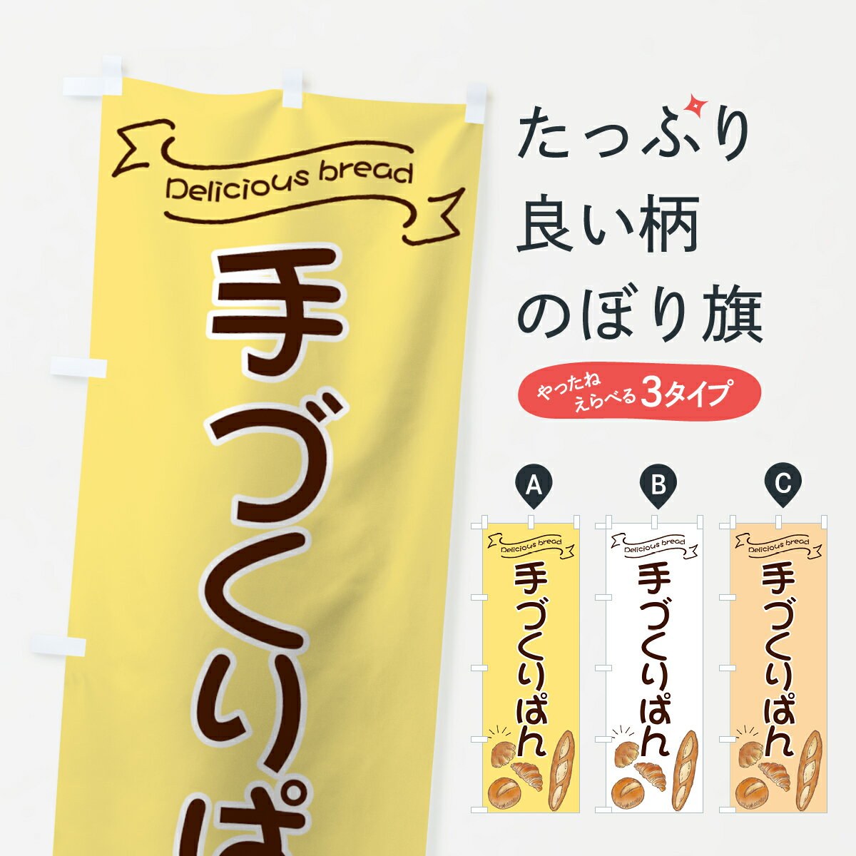 【ネコポス送料360】 のぼり旗 手づくりぱんのぼり 7JAT パン屋 ブレッド グッズプロ 【名入れできます+1017円】