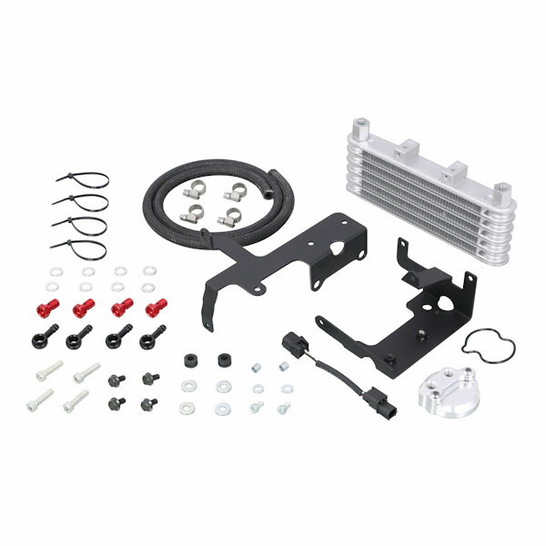 適合車種:HONDA グロム JC92全車種 5段コア・上部マウントタイプ ボアアップをはじめとして、 ハイチューンされたエンジンの必需品。 高回転・高性能化したエンジンは その代償として膨大な熱を発し、 ノーマルのままでは、オーバーヒート ・焼き付き等、破損する場合がありますので、 オイルクーラーの装着をお薦めします。 スーパーオイルクーラーキット(5段コア)は 400ccクラスのオイルクーラーと同等の 放熱量を誇り、レースを始め炎天下等の 苛酷な条件下でも、安定したエンジン 性能を発揮します。 ●車種専用ステー付属。 ボルトオン装着が可能です。 ●オイルクーラーにはホース取り回し 自由度が高いユニオンボルトを採用。 またユニオンボルトには、 カラーアルマイト処理済み。 ●コンデンサー内オイル容量 150cc(5段コア) 75cc(3段コア) ○5段コアコンデンサー ○取り出しユニット付属 ○センサー延長ハーネス付属 〇ステー:スチール製ブラック 〇オイル取出口: シリンダーヘッド上部タペットキャップ 〇オイル取出口: アルミ削り出し/シルバーアルマイト ※ノーマルエアクリーナー使用不可 (別途UNIフィルターキットが必要です。)