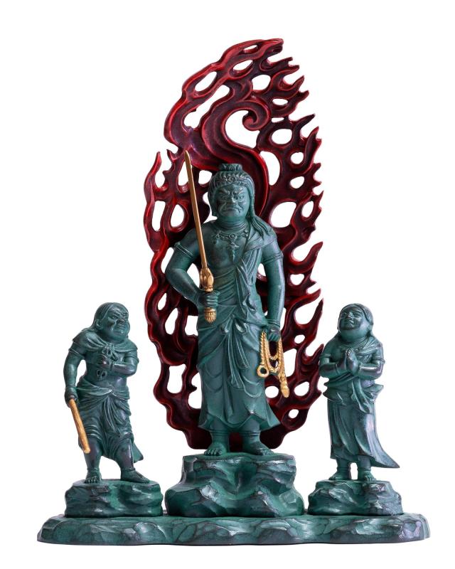 仏像 童子不動明王 16cm(青銅彩色) 仏師:牧田秀雲 原型_(酉年生まれ)十二支守り本尊 不動三尊 高岡銅器(どうじふどうみょうおうB)