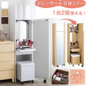2口コンセント付き 全身ミラーになる すき間ドレッサー スツールセット jenna ジェンナ[00]