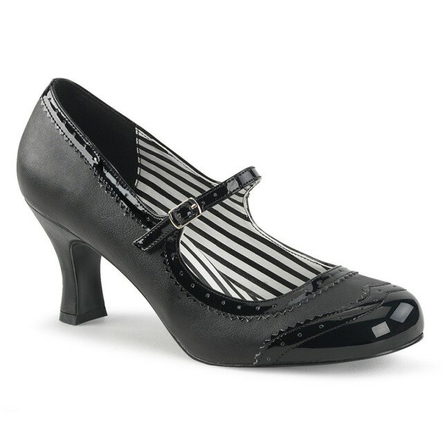 PLEASER【取り寄せ】プリーザー・フェイクレザーメリージェーンパンプス/品番:JENNA-06/JENNA06/7cmヒール/大きいサイズ/レディース/クィーンサイズ/ローヒール/社交ダンス/衣装/ドレス/ダンス/コスプレ/発表会/バイカラー/キトゥーンヒール/エナメルトゥ/ブラック/合皮黒