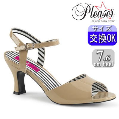 オリジナル特典付 プリーザー ストラップ サンダル 7cm(8cm) センチ ヒール クリーム ベージュ ローヒール エナメル ストラップ フレンチヒール オープントゥ ヒール レディース 靴 女装 大きい サイズ 27cm 28cm 29cm 30cm Pleaser 公式 正規店 JANNA-09 JENNA09/CR